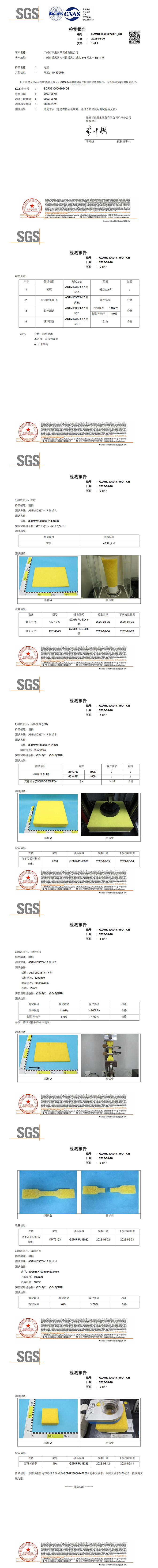 海棉密度与弹性检测报告