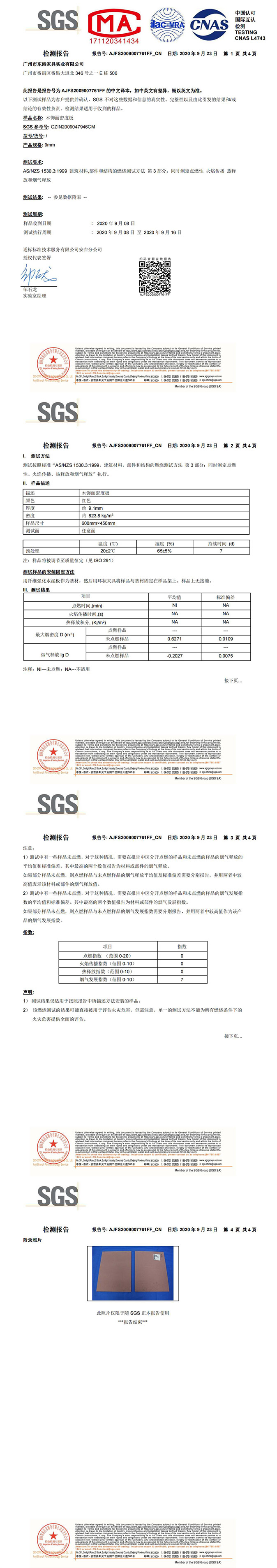 木饰面密度板澳标阻燃检测报告